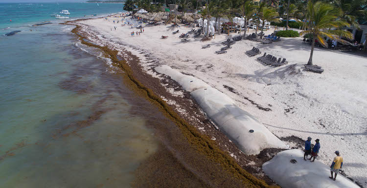 Hoteliers also claim they have spent up to $100,000 on sargassum retention barriers that cover only one kilometer. Sargassum is a brown algae that temporarily float to the coast in piles and look like a spot in the white sand. It gives off a strong smell, similar to that of sulfur, where it accumulates.