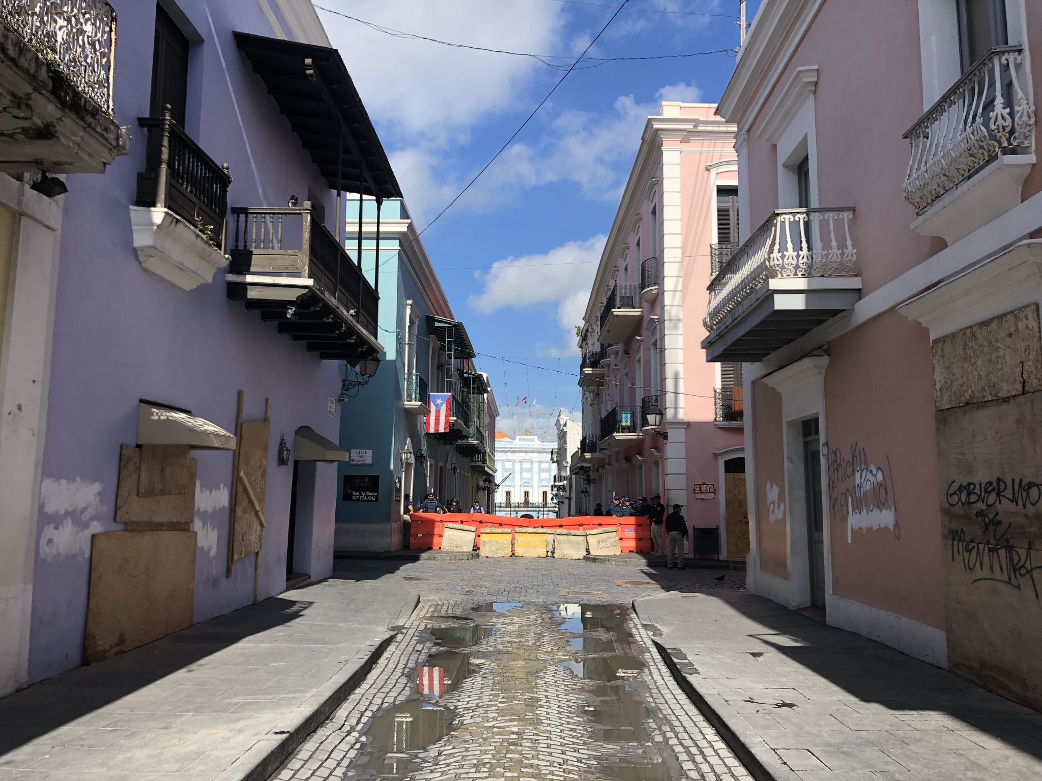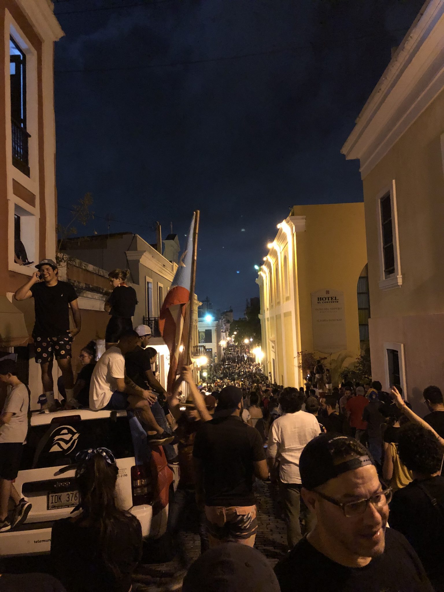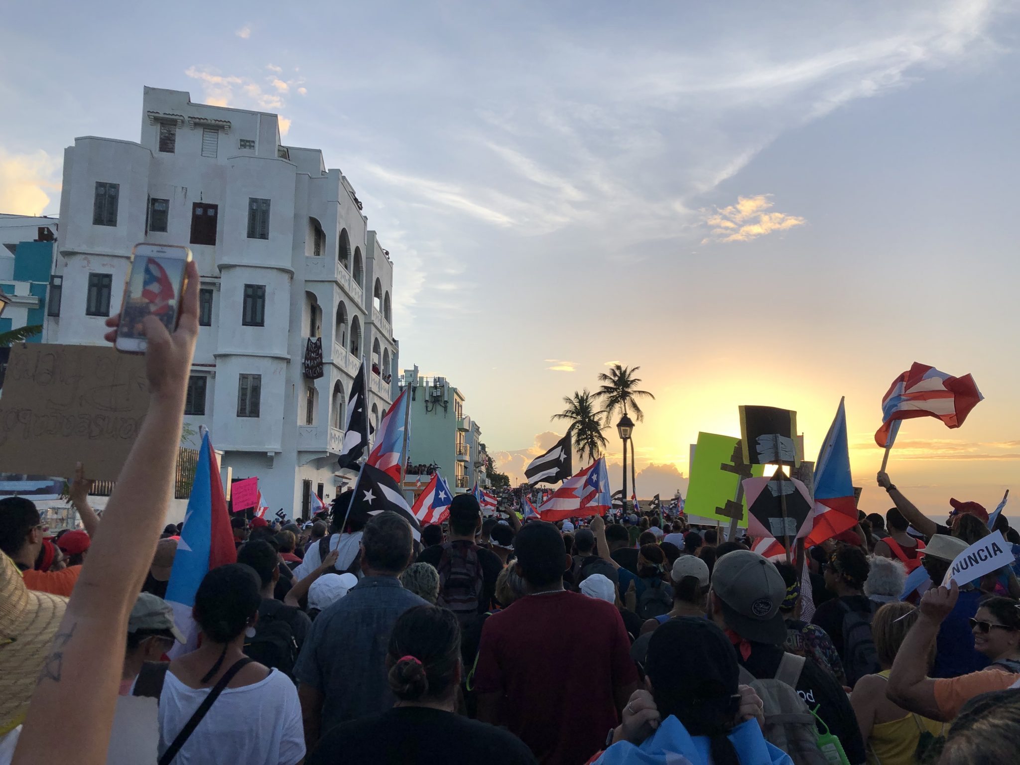 Pot banging on Calle del Cristo on the day of the effective resignation of Ricardo Rosselló Nevares. (Photo courtesy of the authors)